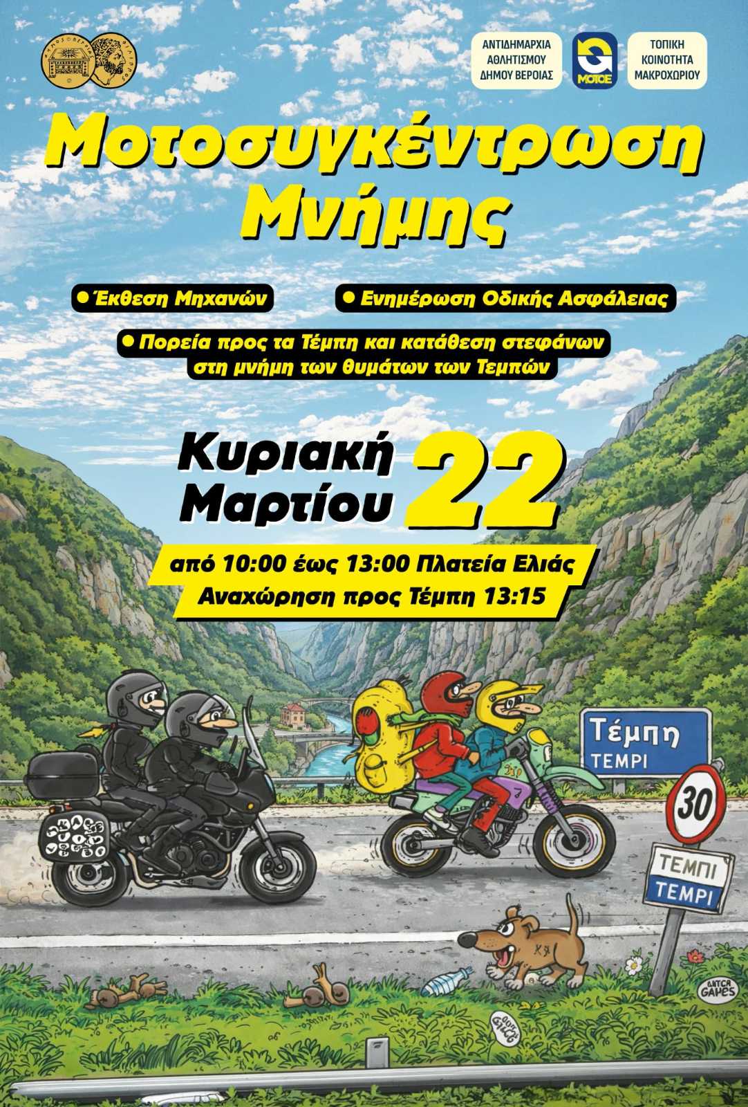 Η ΜΟΤ.Ο.Ε. διοργανώνει την 34η Πανελλήνια Συγκέντρωση Μοτοσυκλετιστών, 28 Μαΐου – 1 Ιουνίου (3μερο Αγίου Πνεύματος) στην Λίμνη Κοκκινογείων του Δήμου Προσοτσάνης στον Νομό Δράμας , εδώ: http://goo.gl/maps/Qkpl5